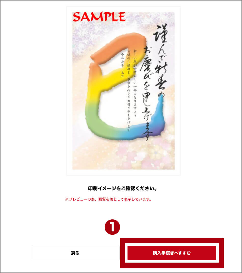 ※続けて他の絵柄を注文する場合は「次の絵柄を選ぶ」ボタンを押してください